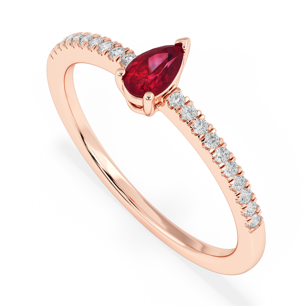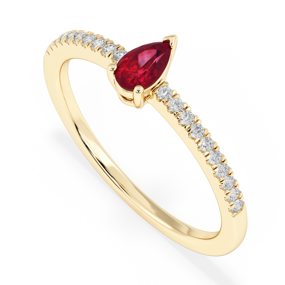 14K Diamond and Pear Ruby Gemstone Fashion Ring