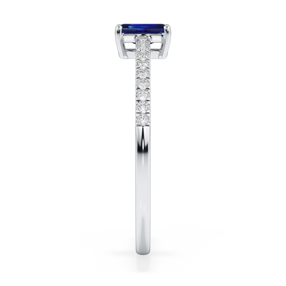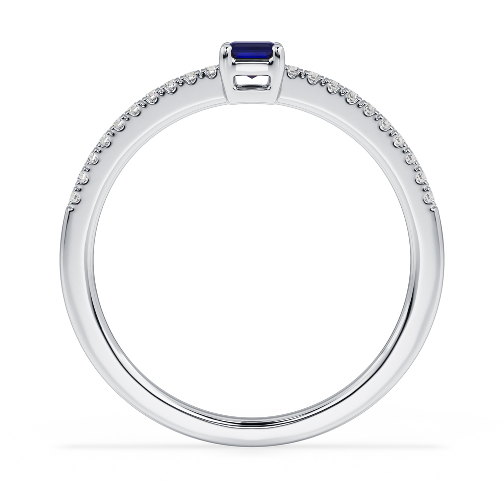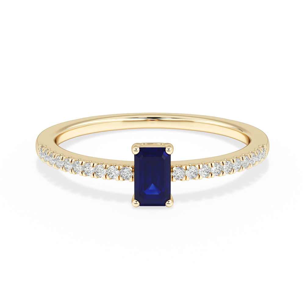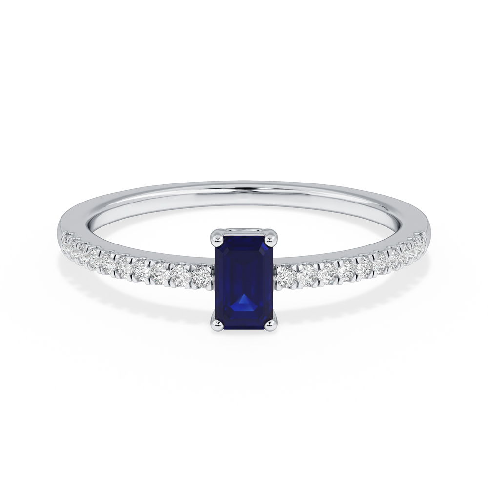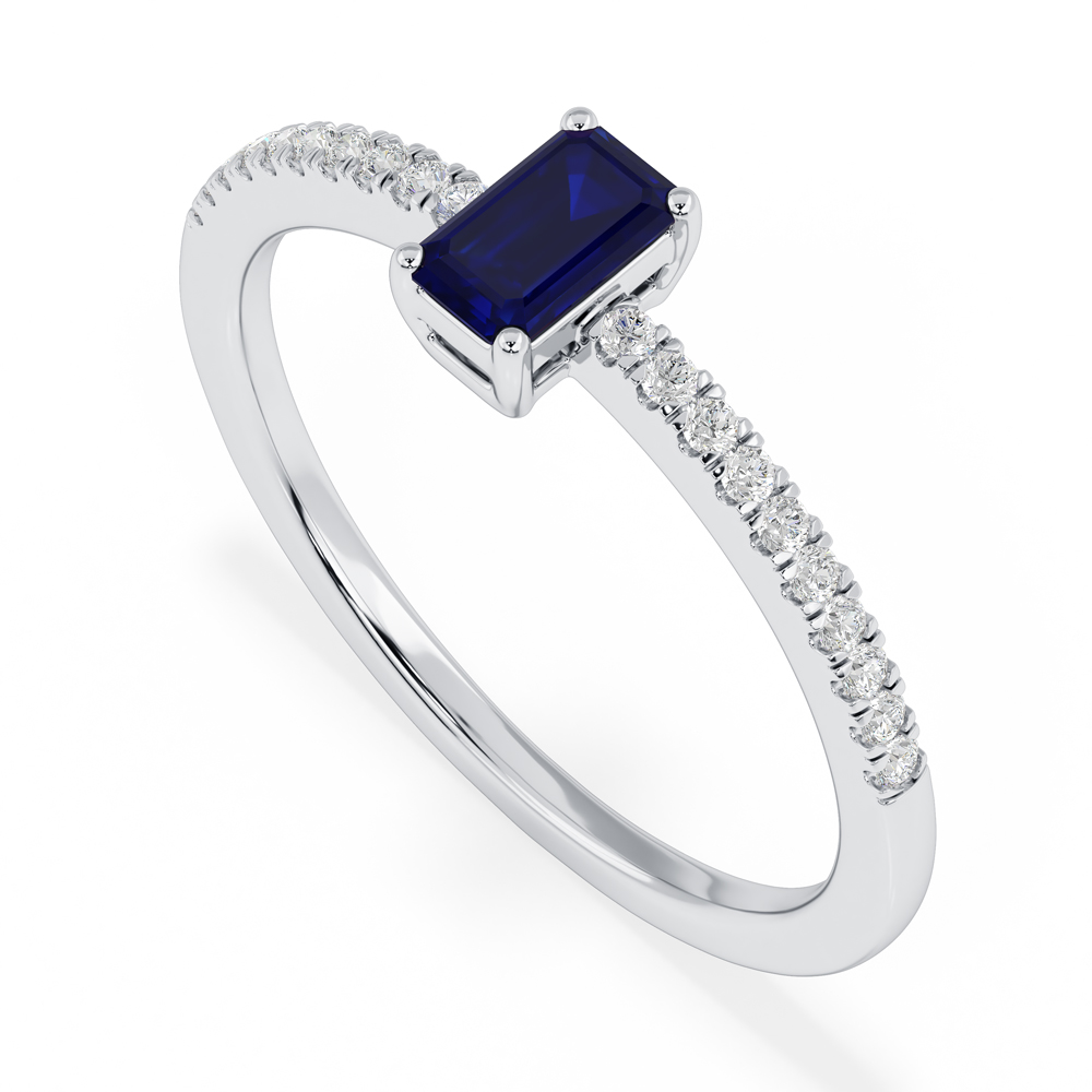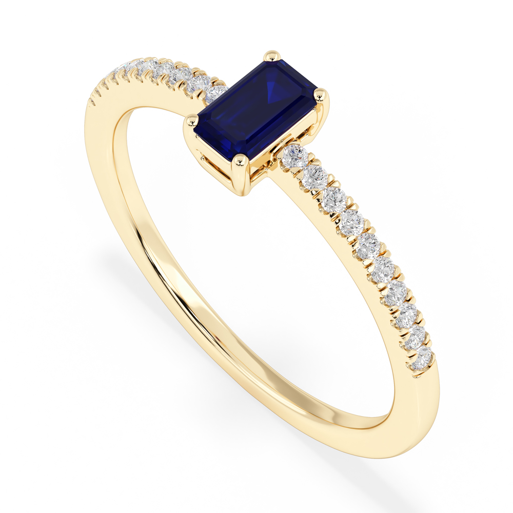 14K Diamond and Emerald Cut Sapphire Fashion Ring