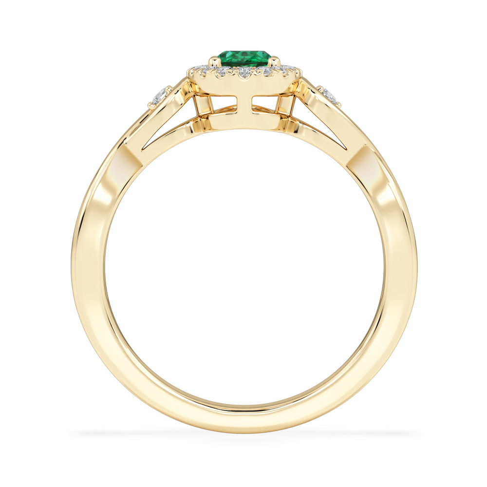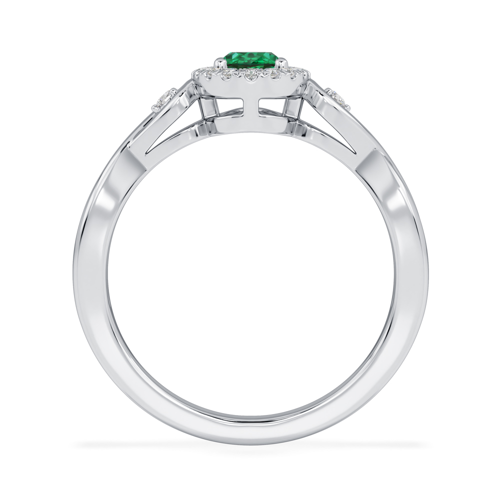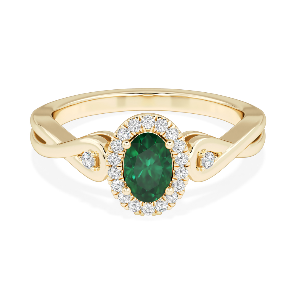 14K Diamond and Oval Emerald Gemstone Fashion Ring with Twist and Side Stones