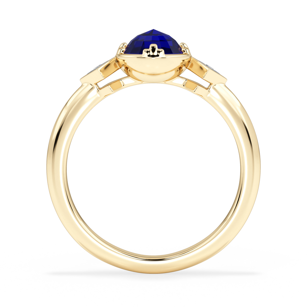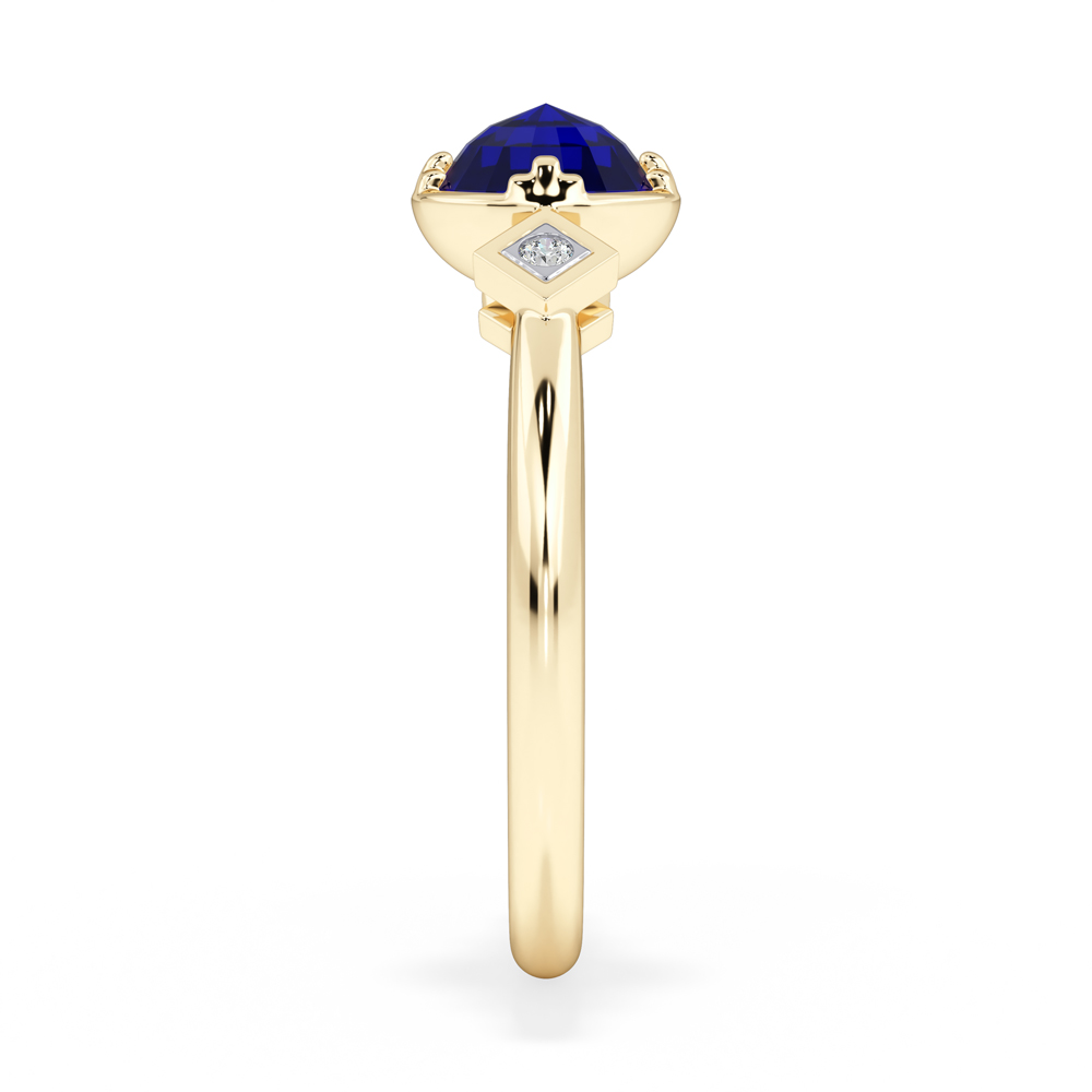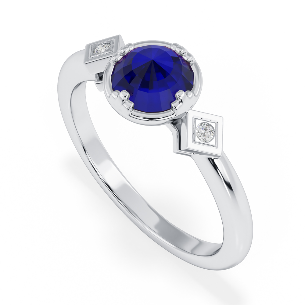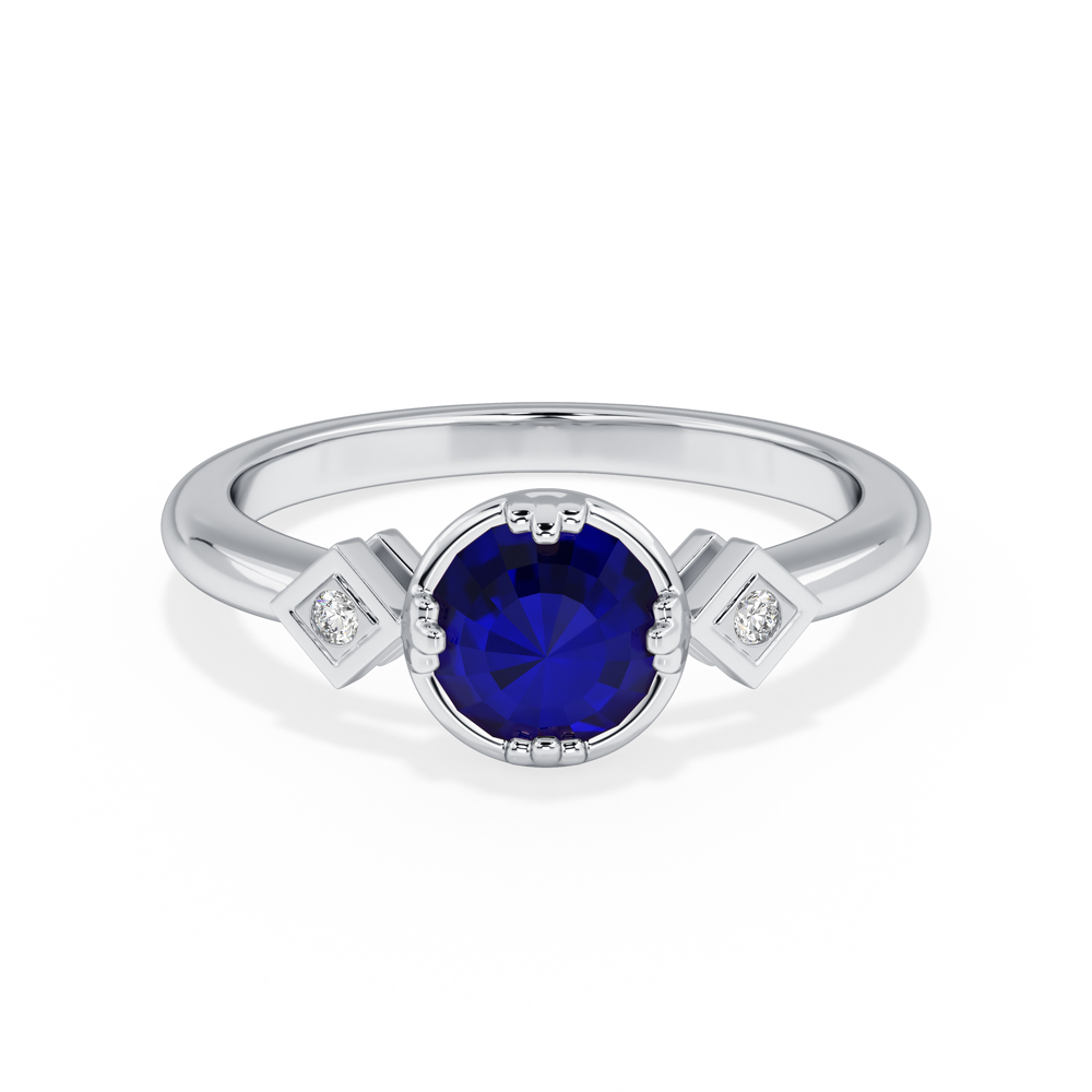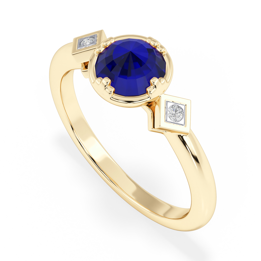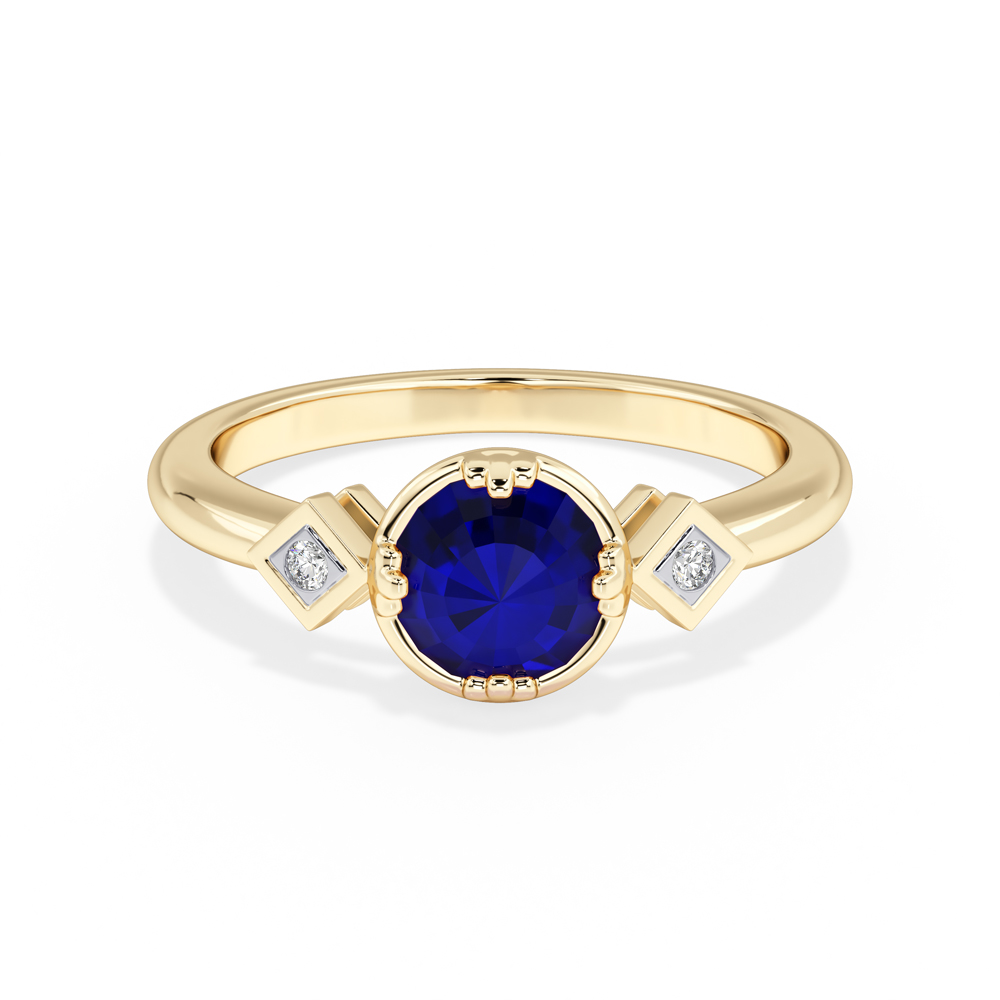 14K Diamond and Sapphire Gemstone Fashion Ring with Round Side Stones