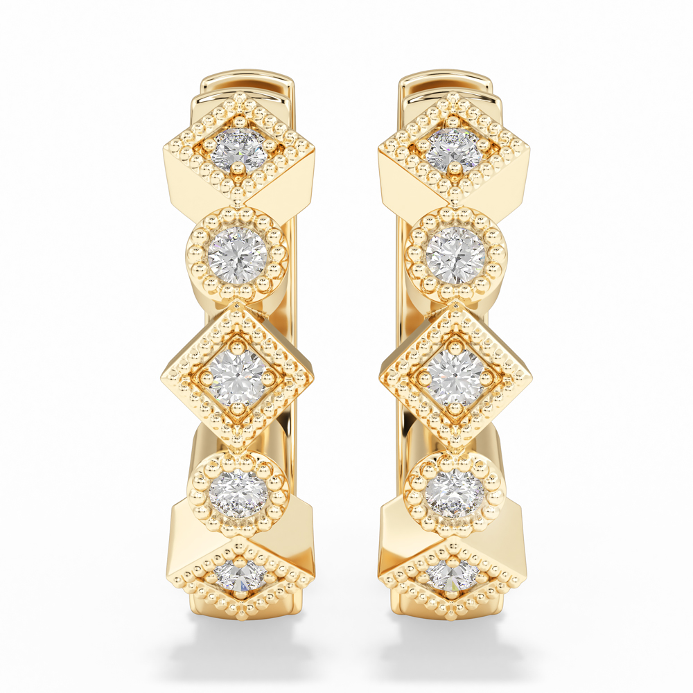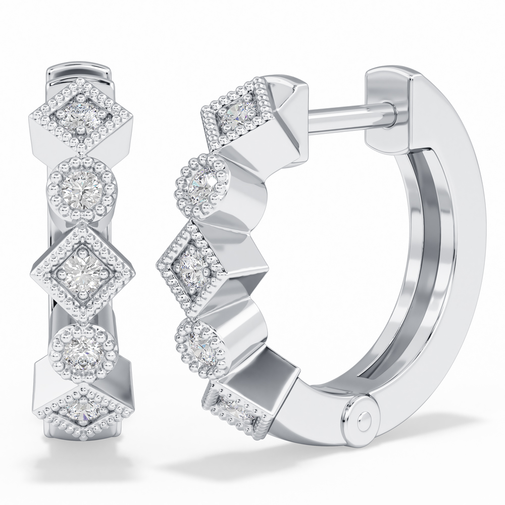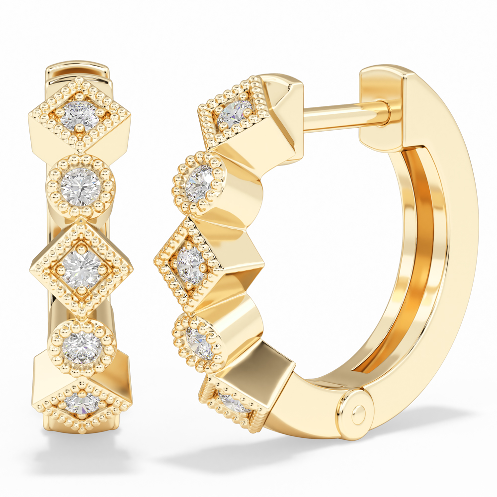 10K Diamond Inner/Outer Huggie Hoop Earrings
