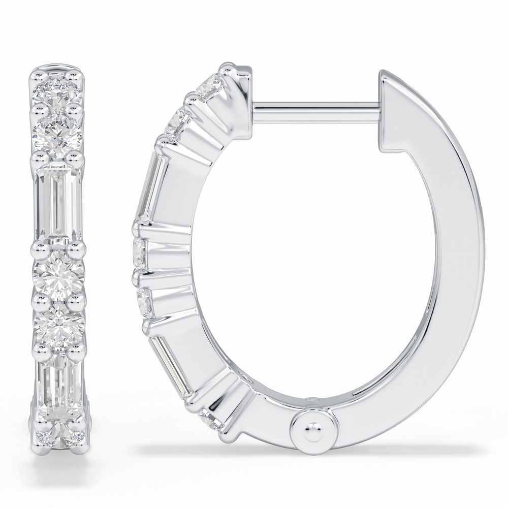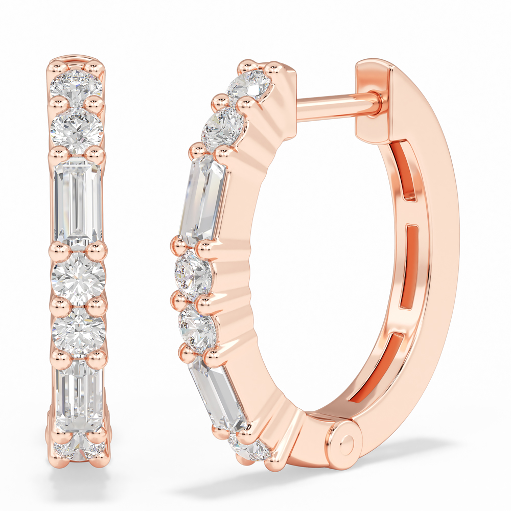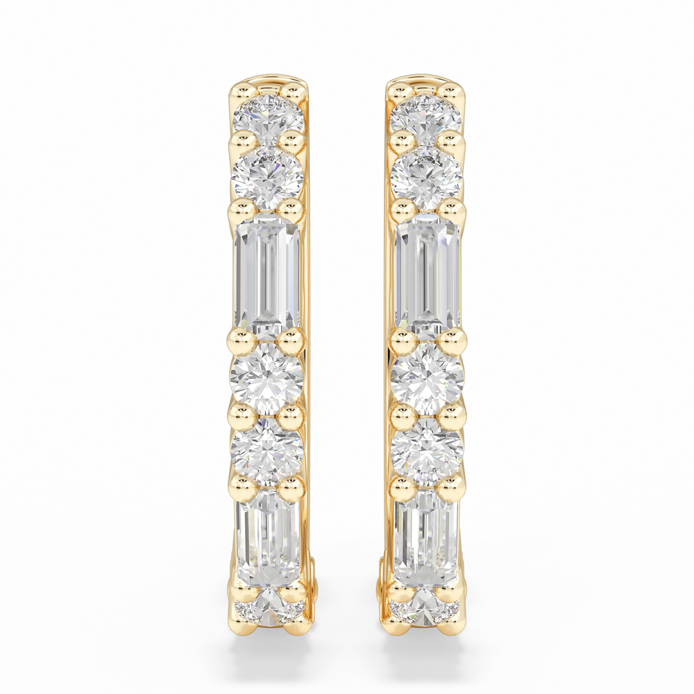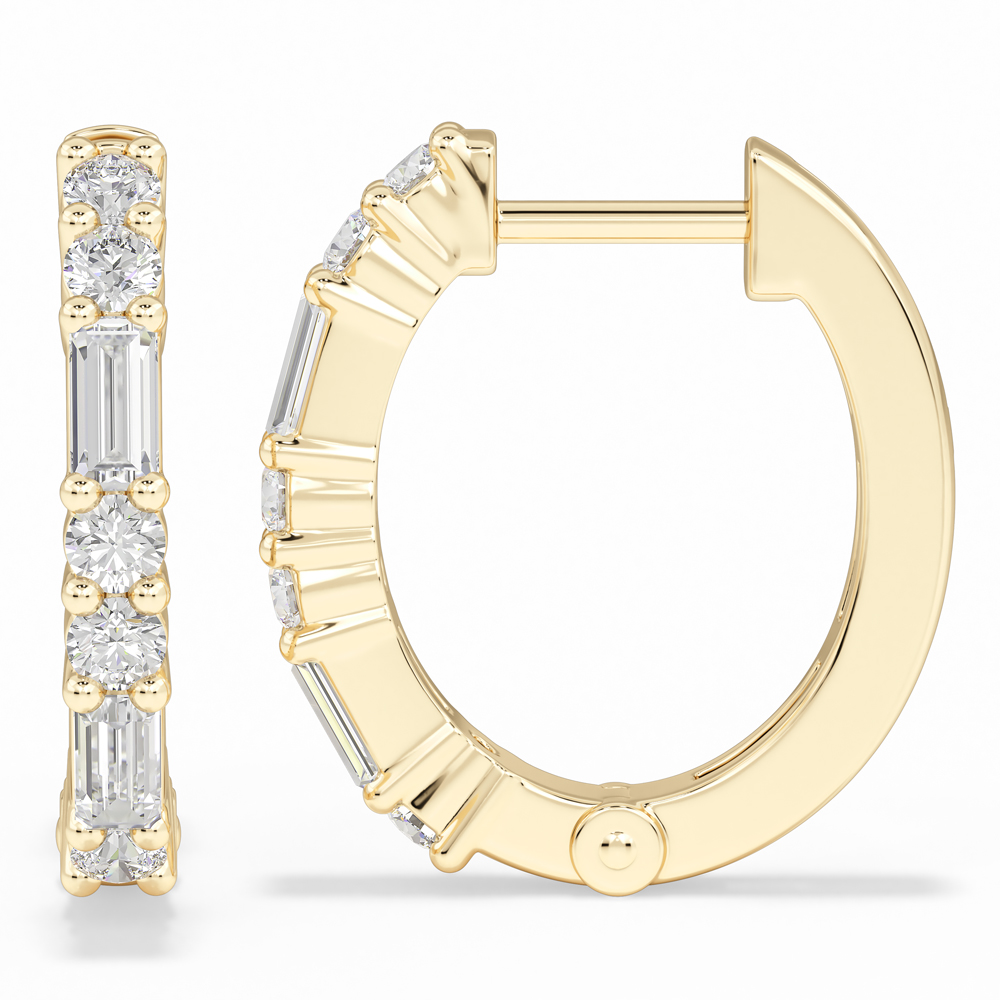 10K Fashion Huggies with Round and Emerald Cut Diamonds