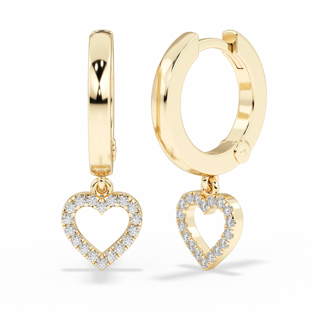 10K Fashion Huggie Drop Earrings with Heart