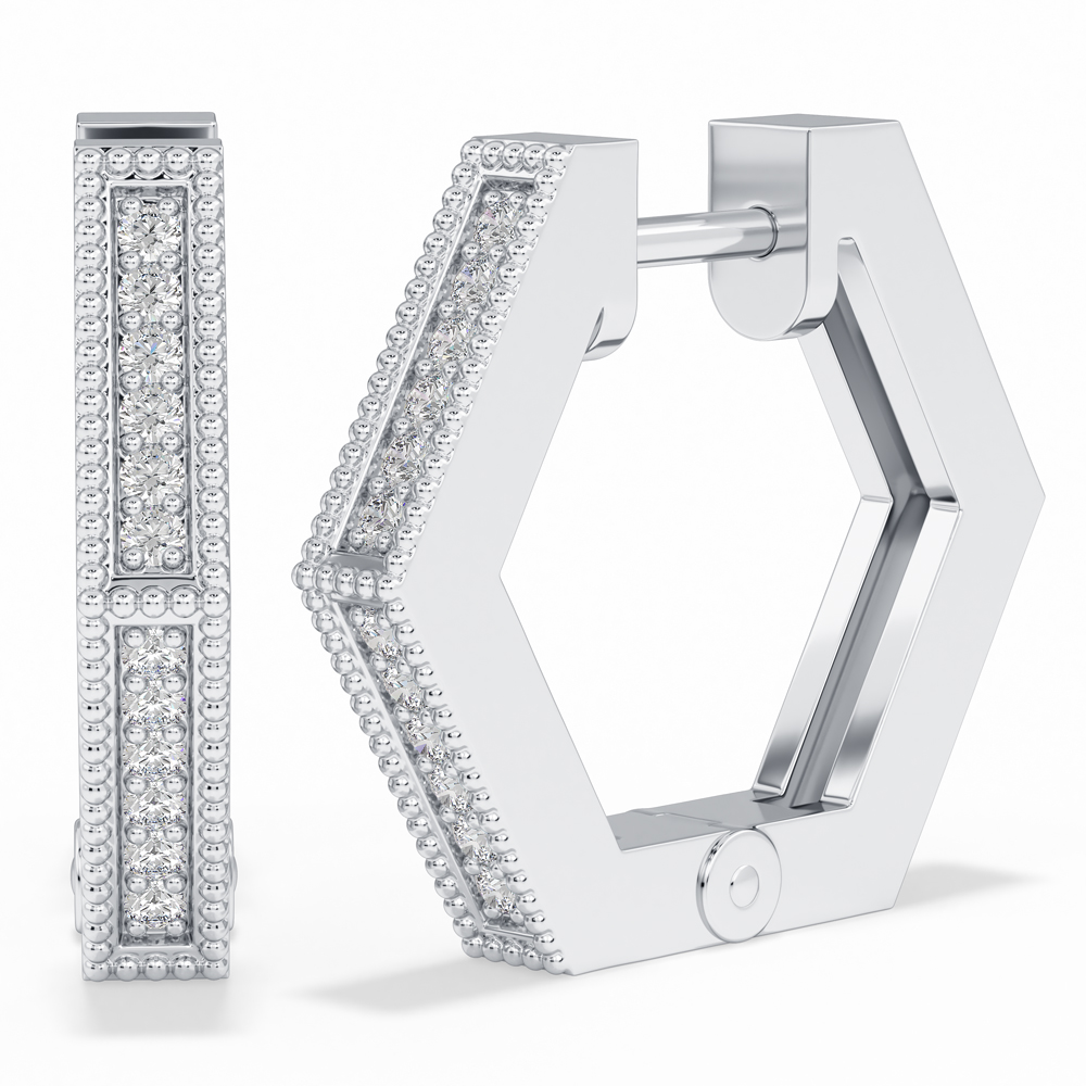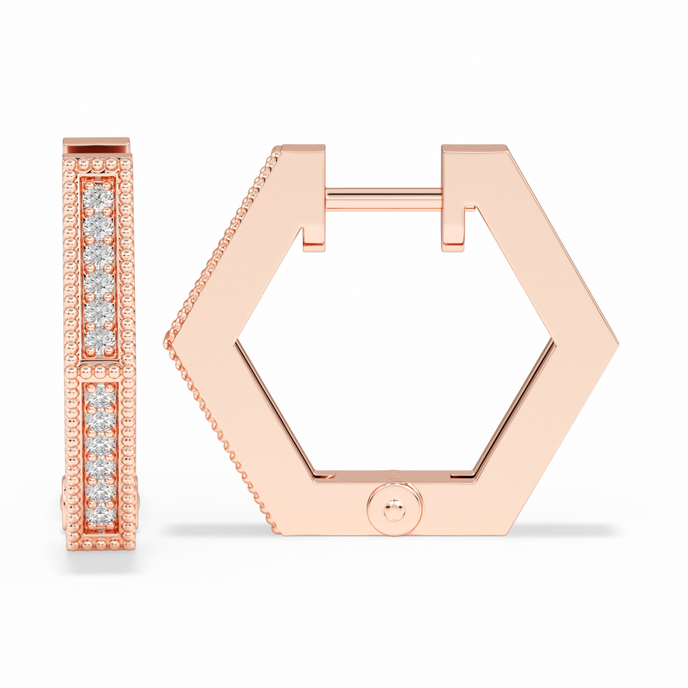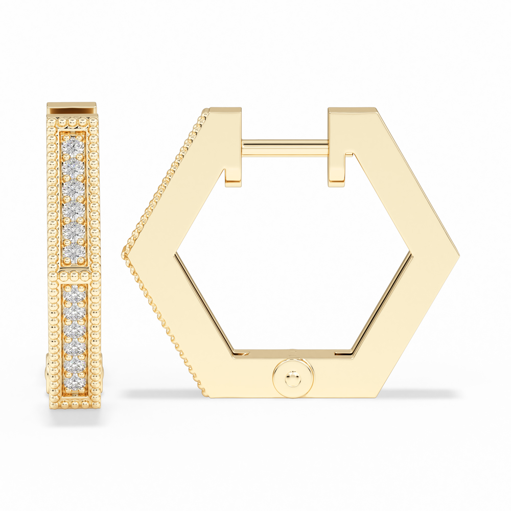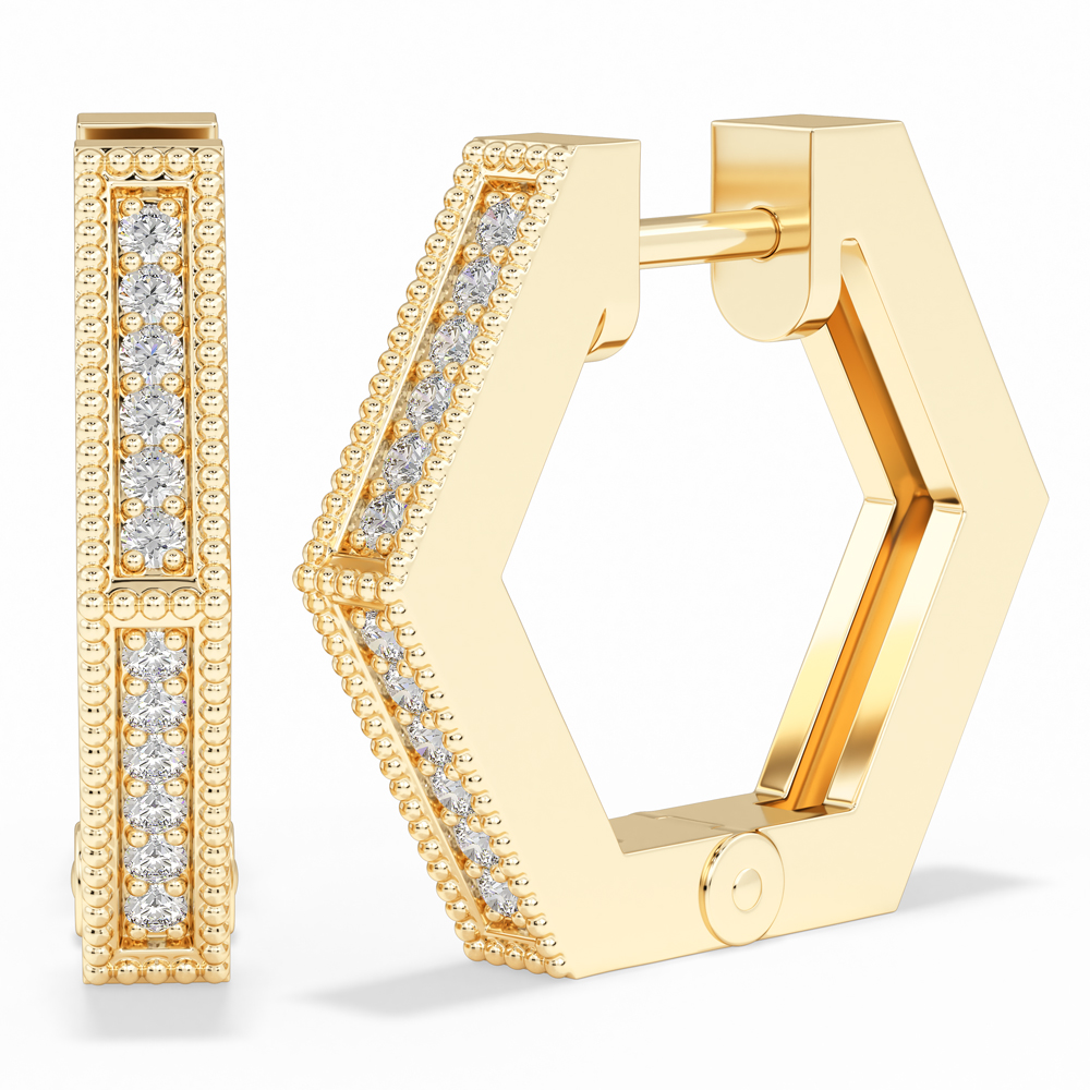 14K Fashion Hexagon Huggies with Diamonds