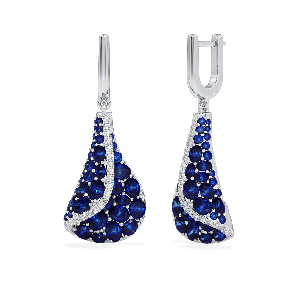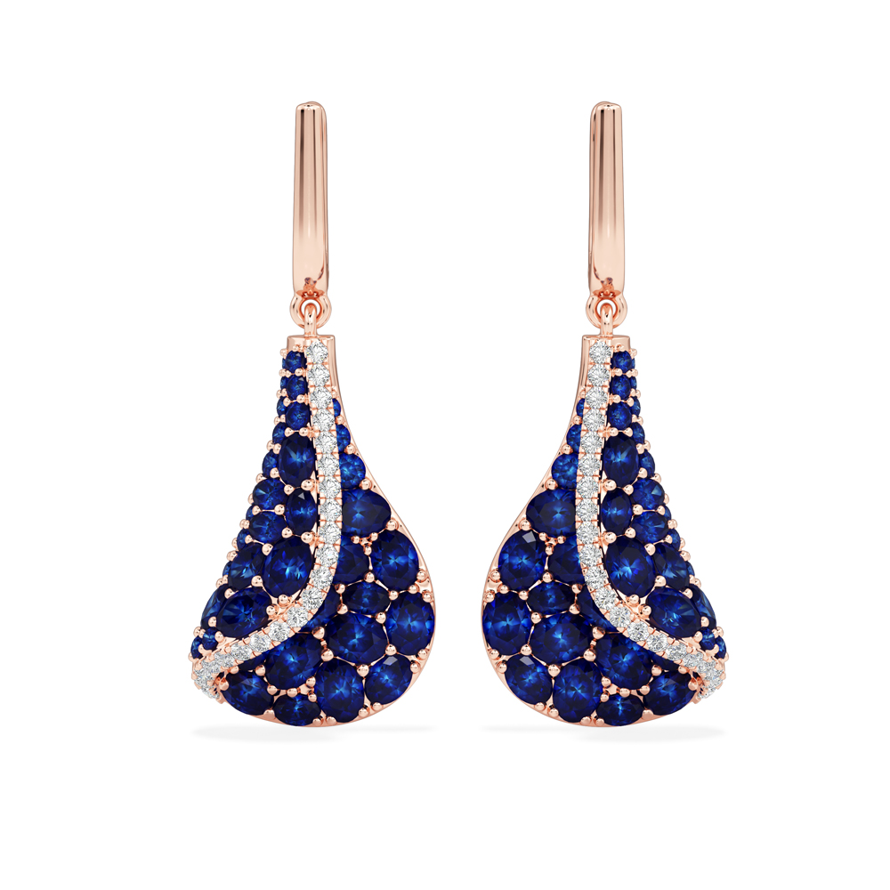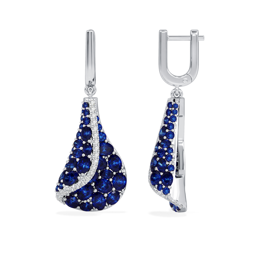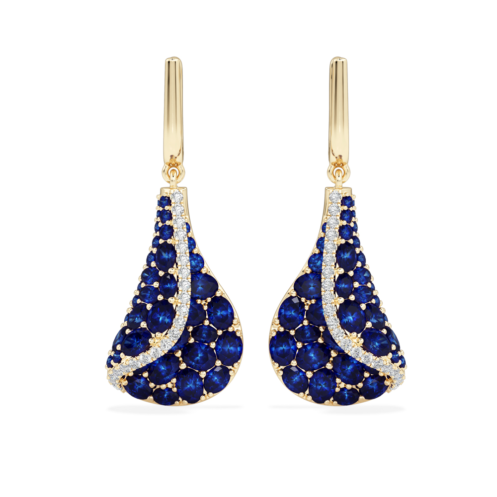 14K Gemstone Drop Earrings w/Sapphires and Diamond Accents