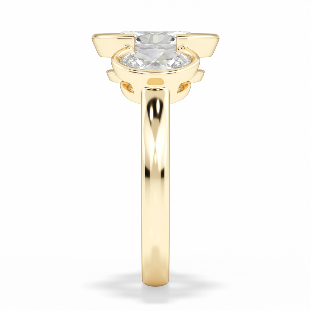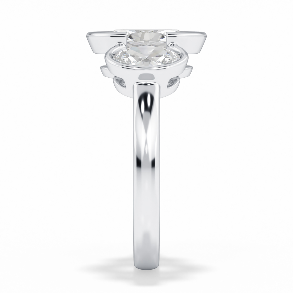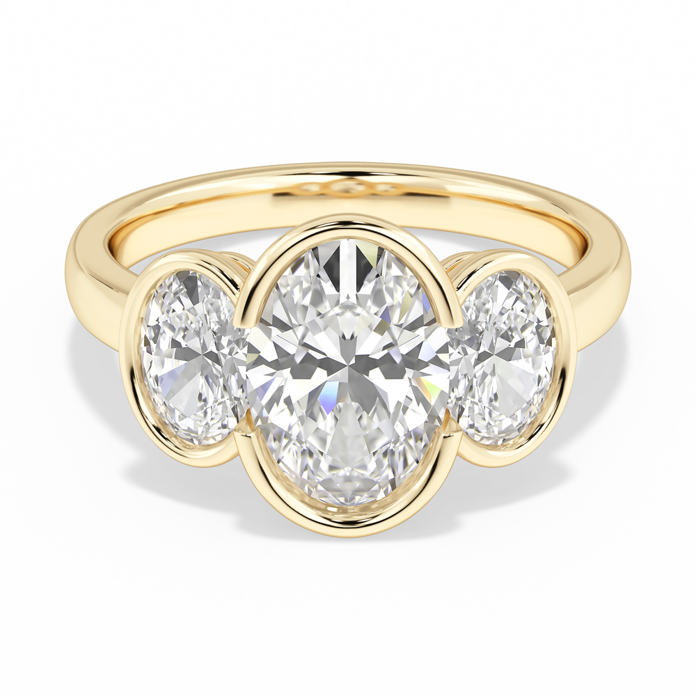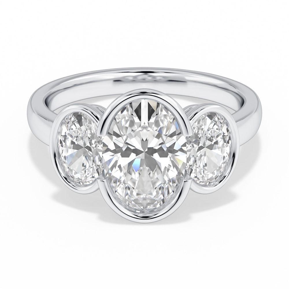 Lab Oval Cut Bezel Set Diamond Engagement Ring with Oval Cut Side Stones