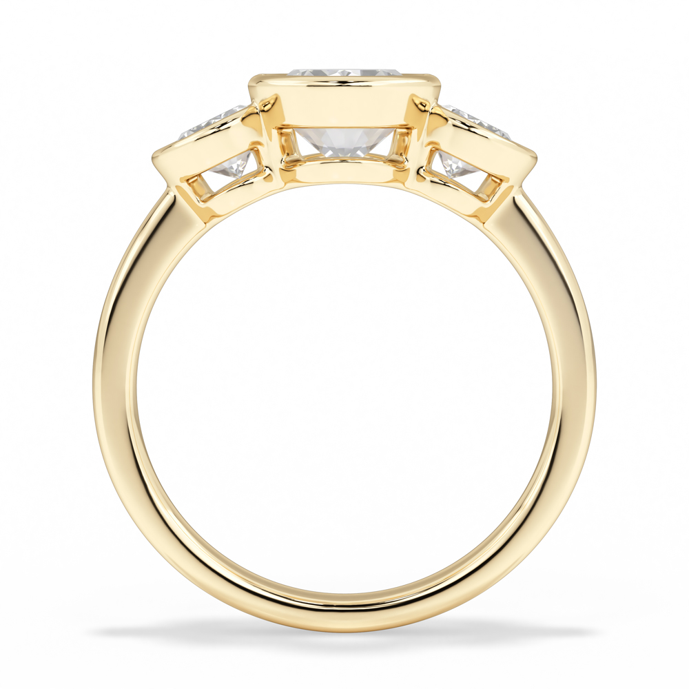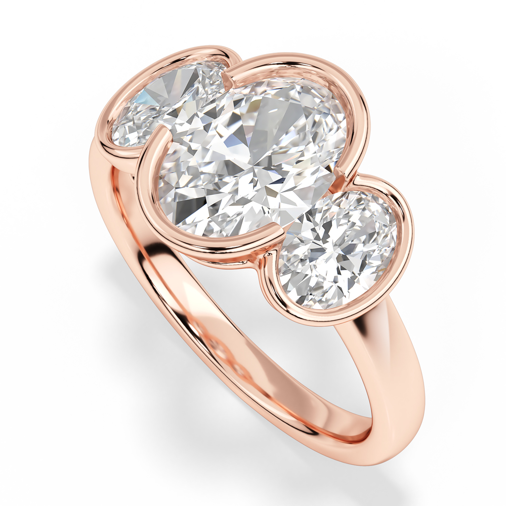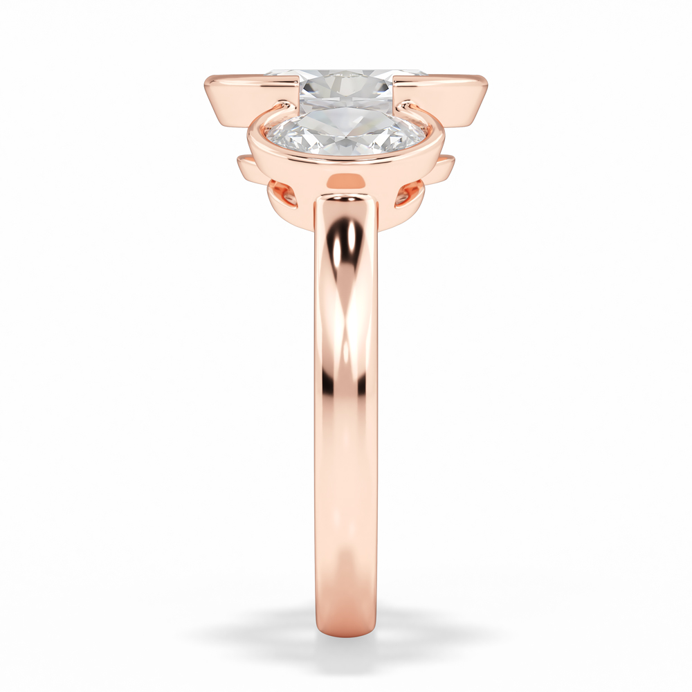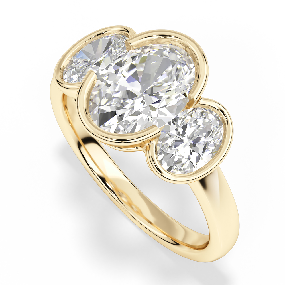 Lab Oval Cut Bezel Set Diamond Engagement Ring with Oval Cut Side Stones