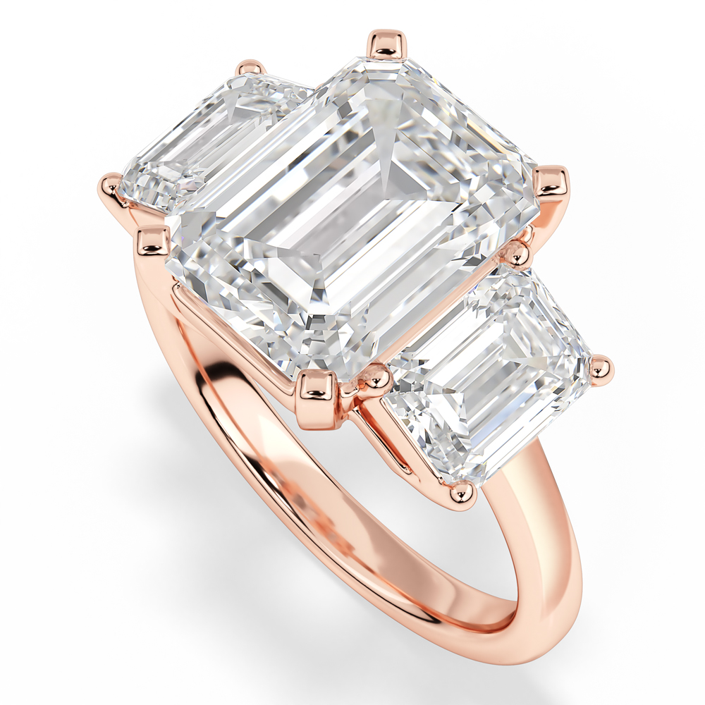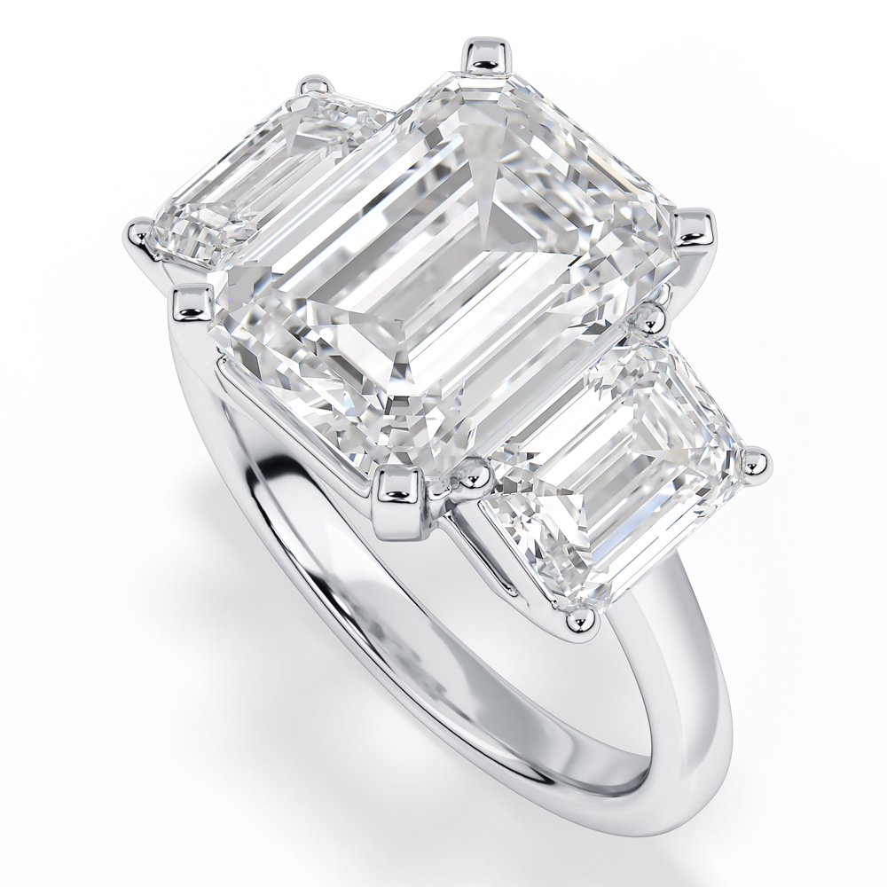 Lab Emerald Cut Diamond Engagement Ring with Emerald Cut Set Side Stones