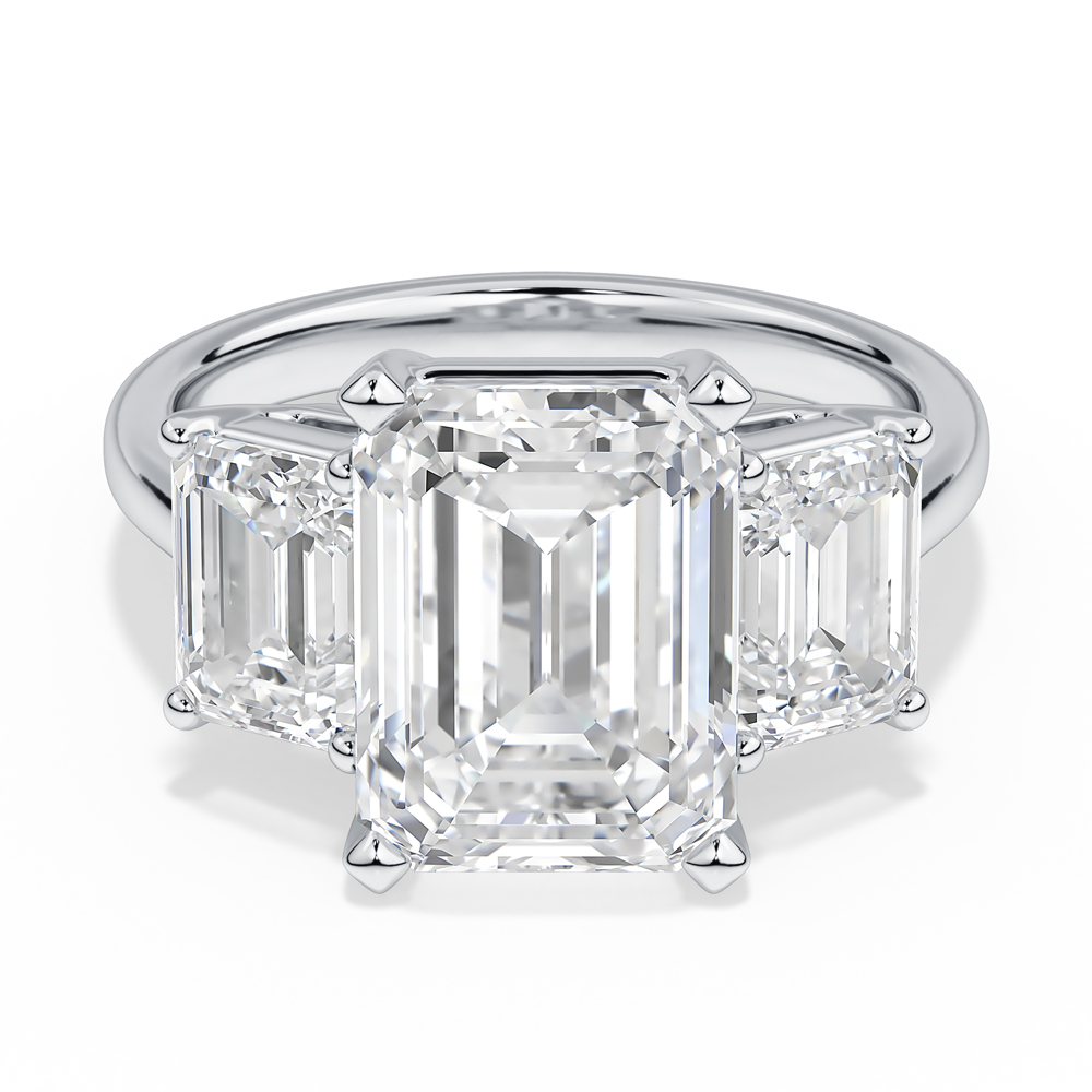 Lab Emerald Cut Diamond Engagement Ring with Tapered Baguette Side Stones