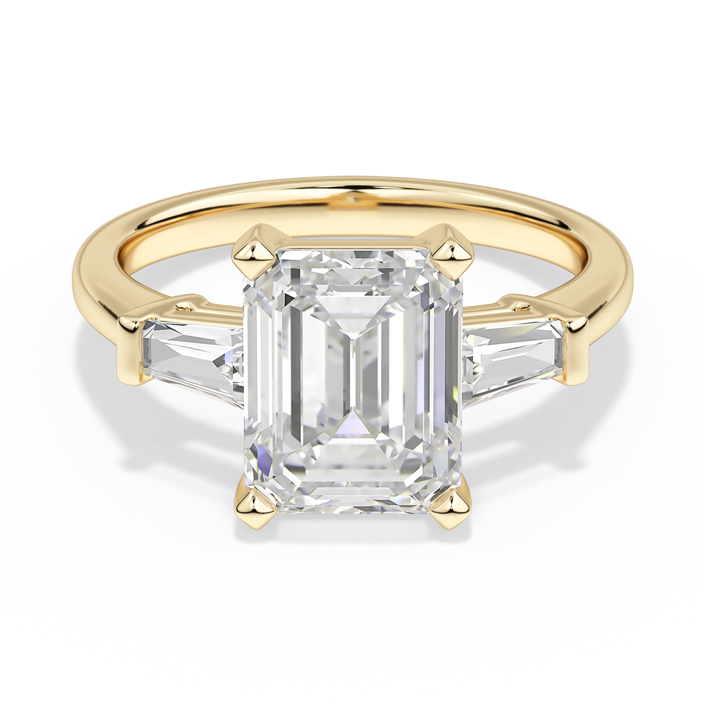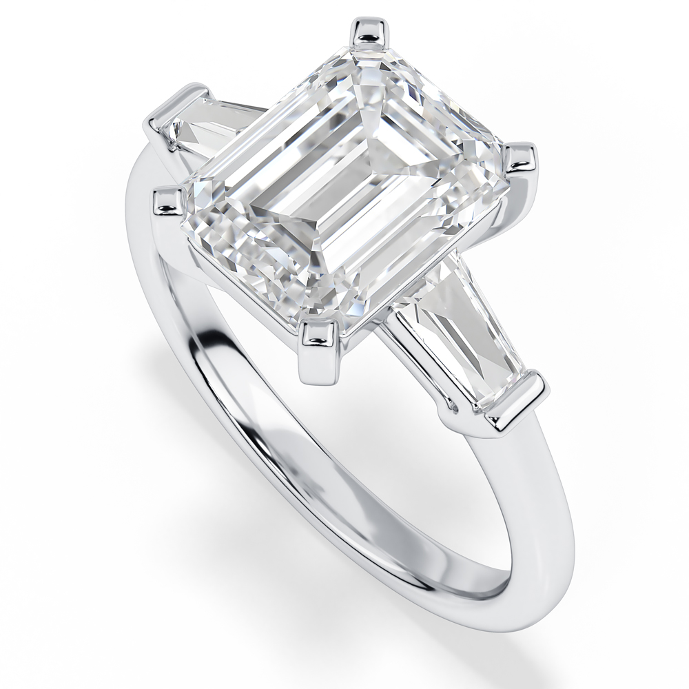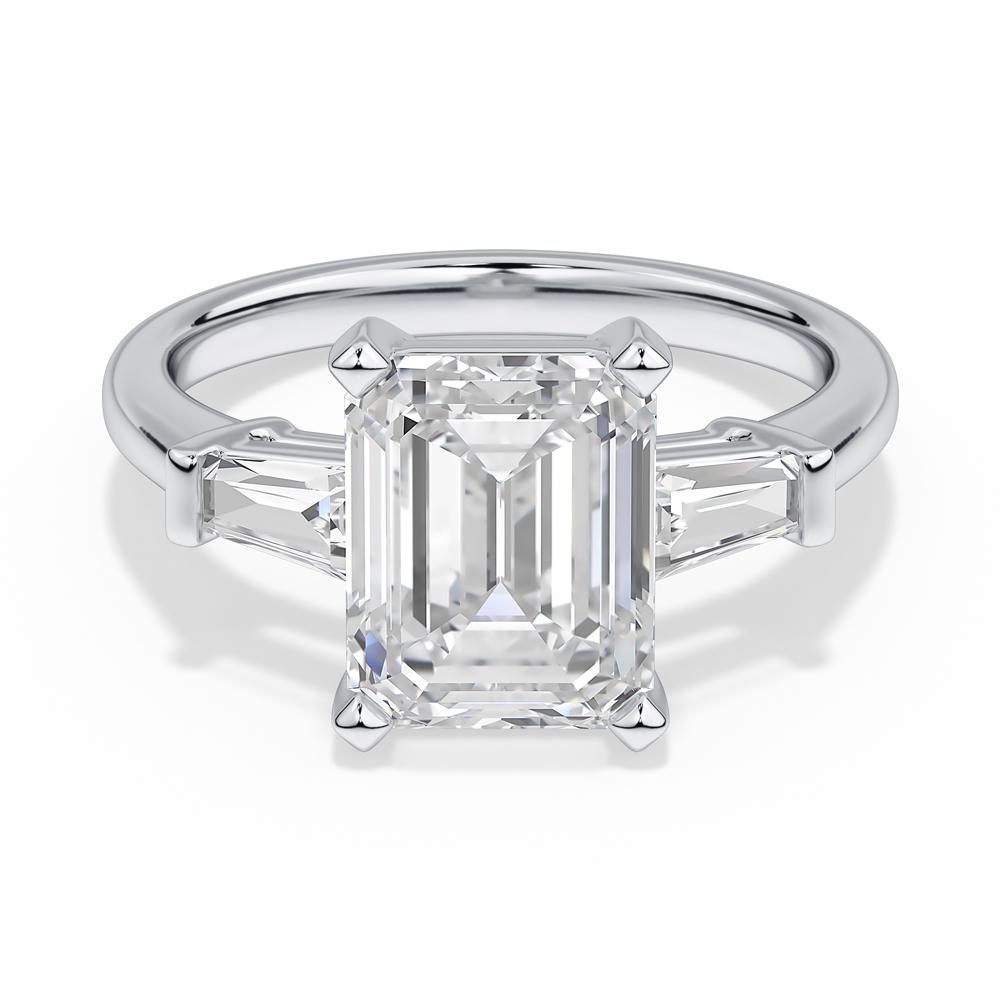 Lab Emerald Cut Diamond Engagement Ring with Tapered Baguette Side Stones