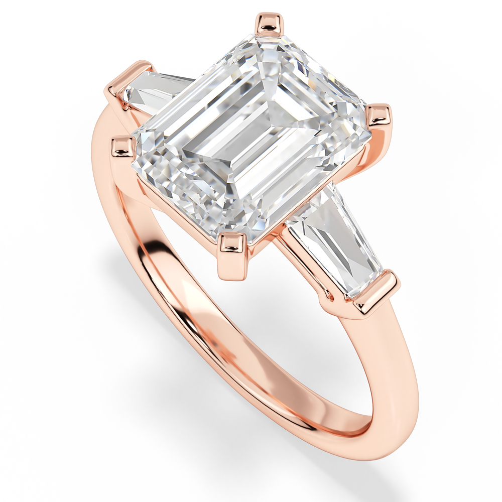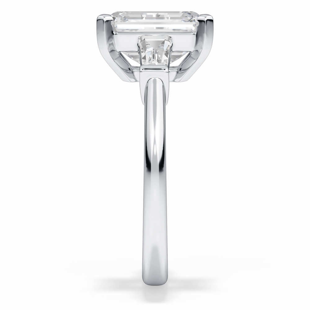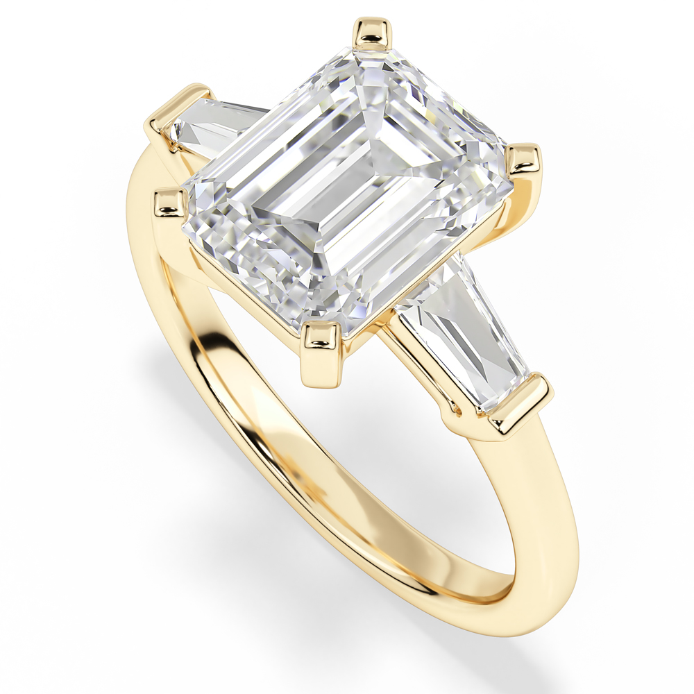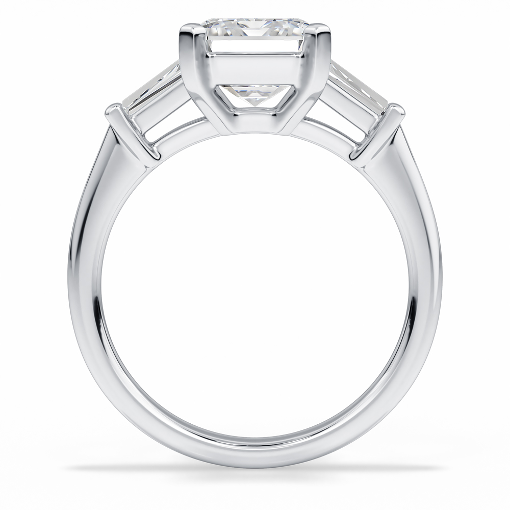 Lab Emerald Cut Diamond Engagement Ring with Tapered Baguette Side Stones