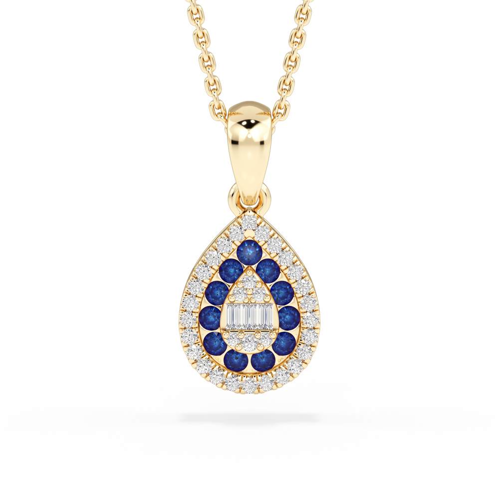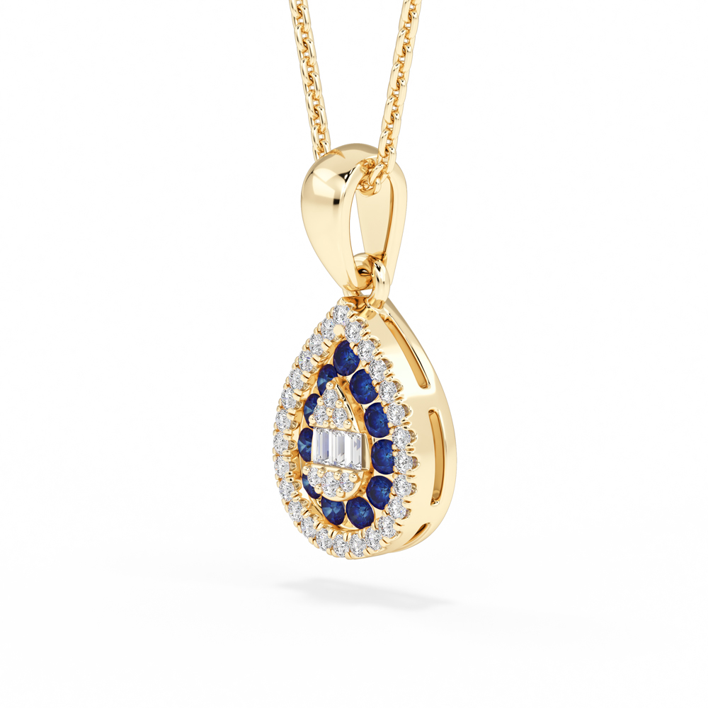 10K Gemstone Pendant w/ Pear Shaped Sapphire and Diamond Halo