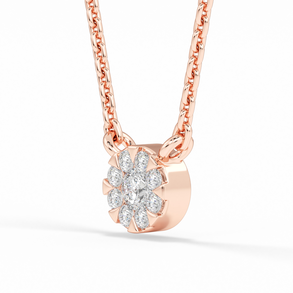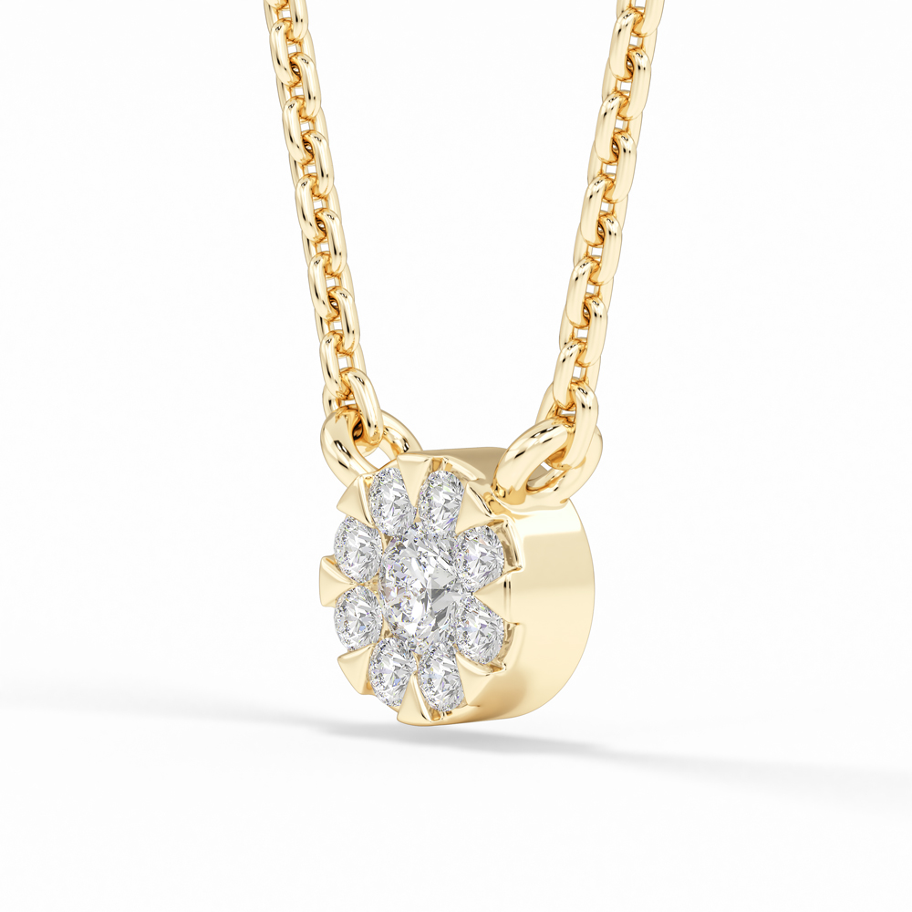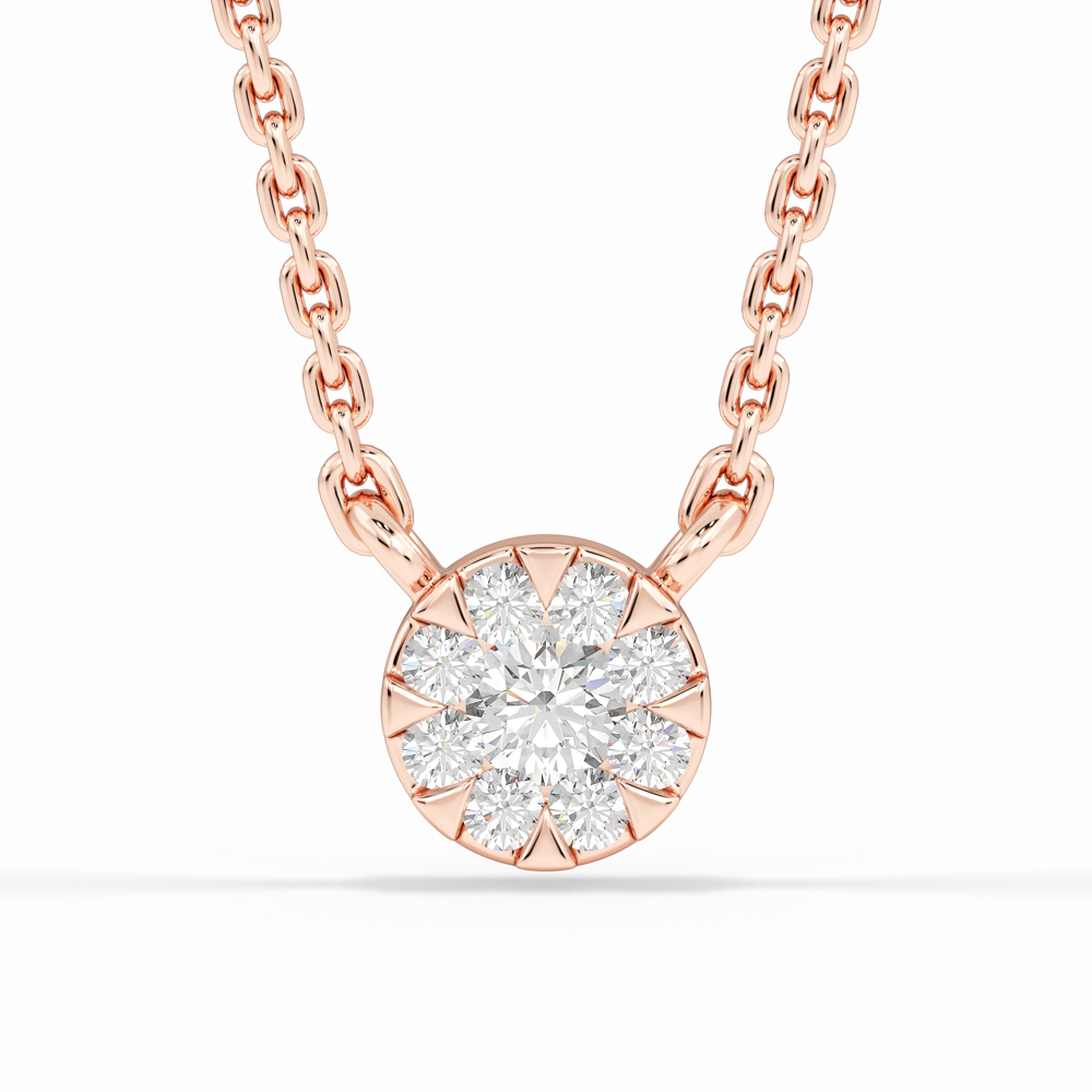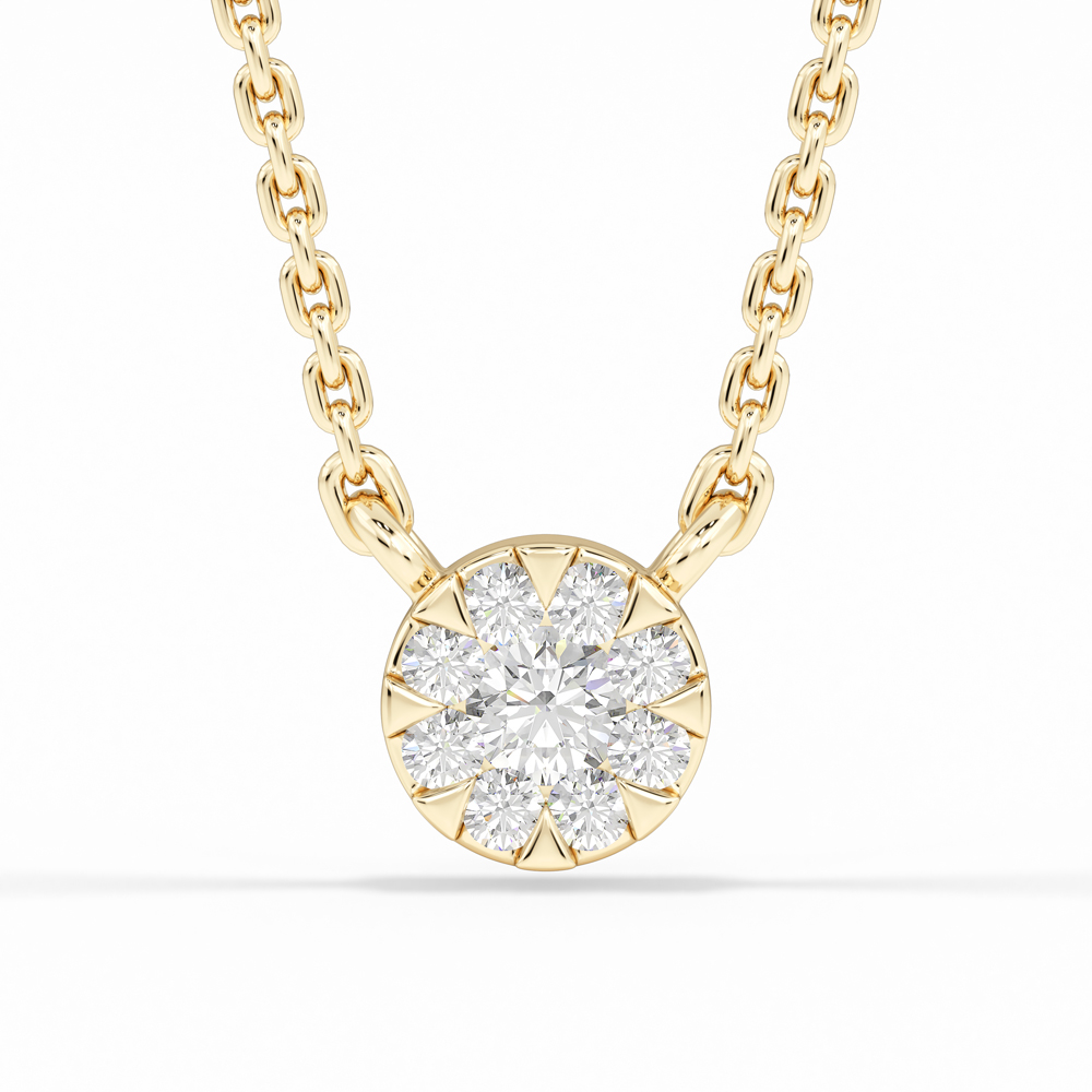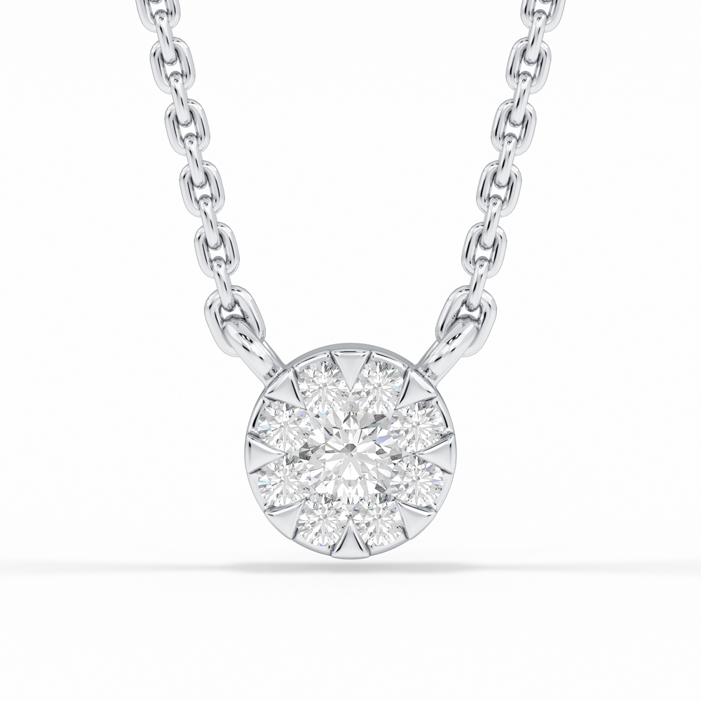 14K Round Cluster Diamond Necklace