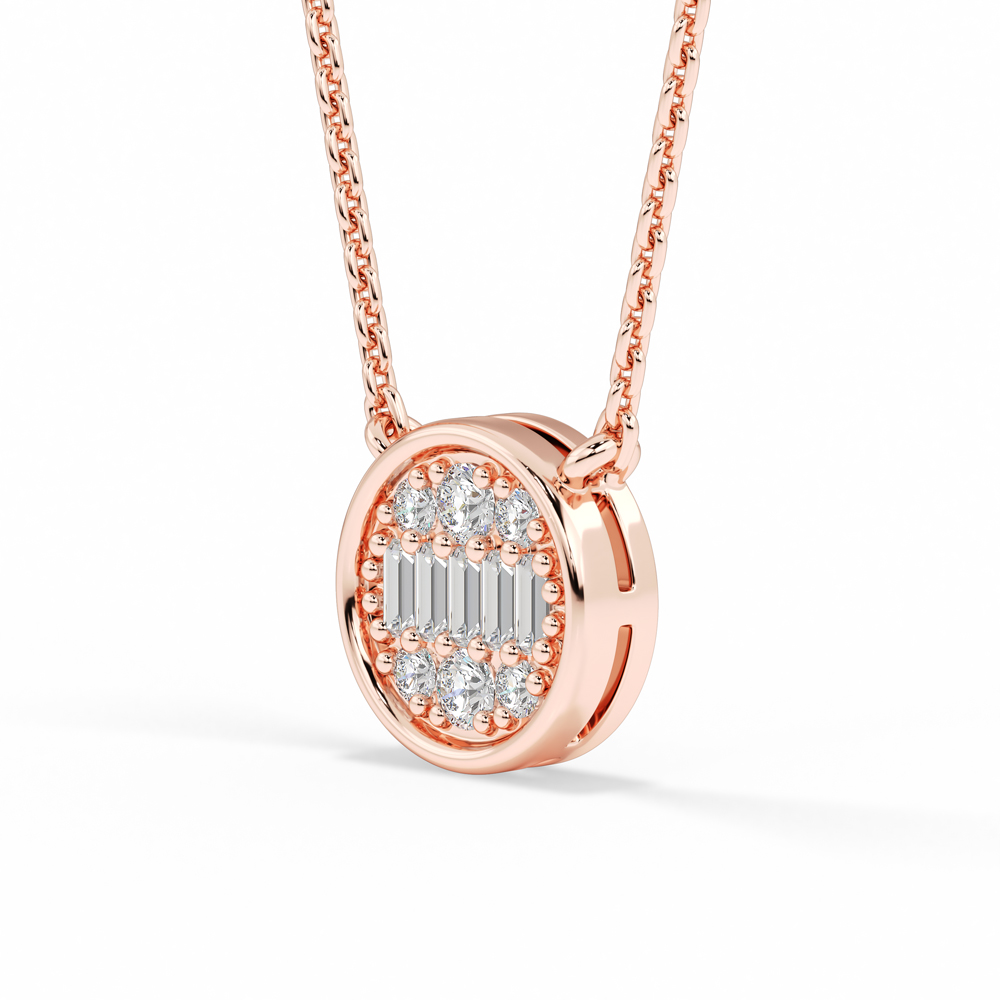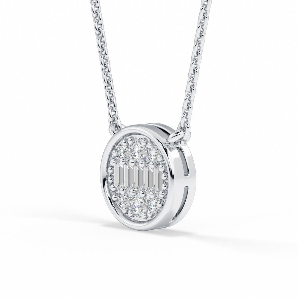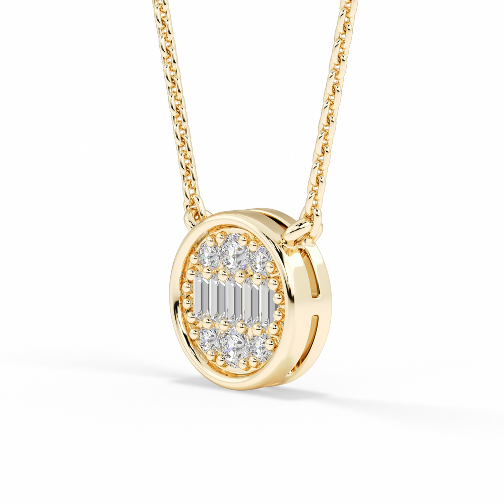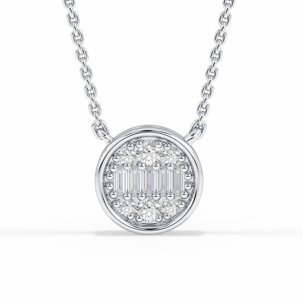 14K Round Cluster Necklace with Round and Baguette Diamonds
