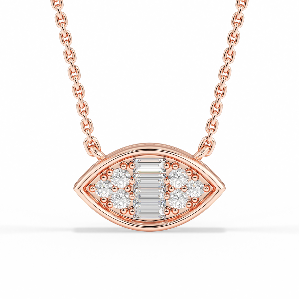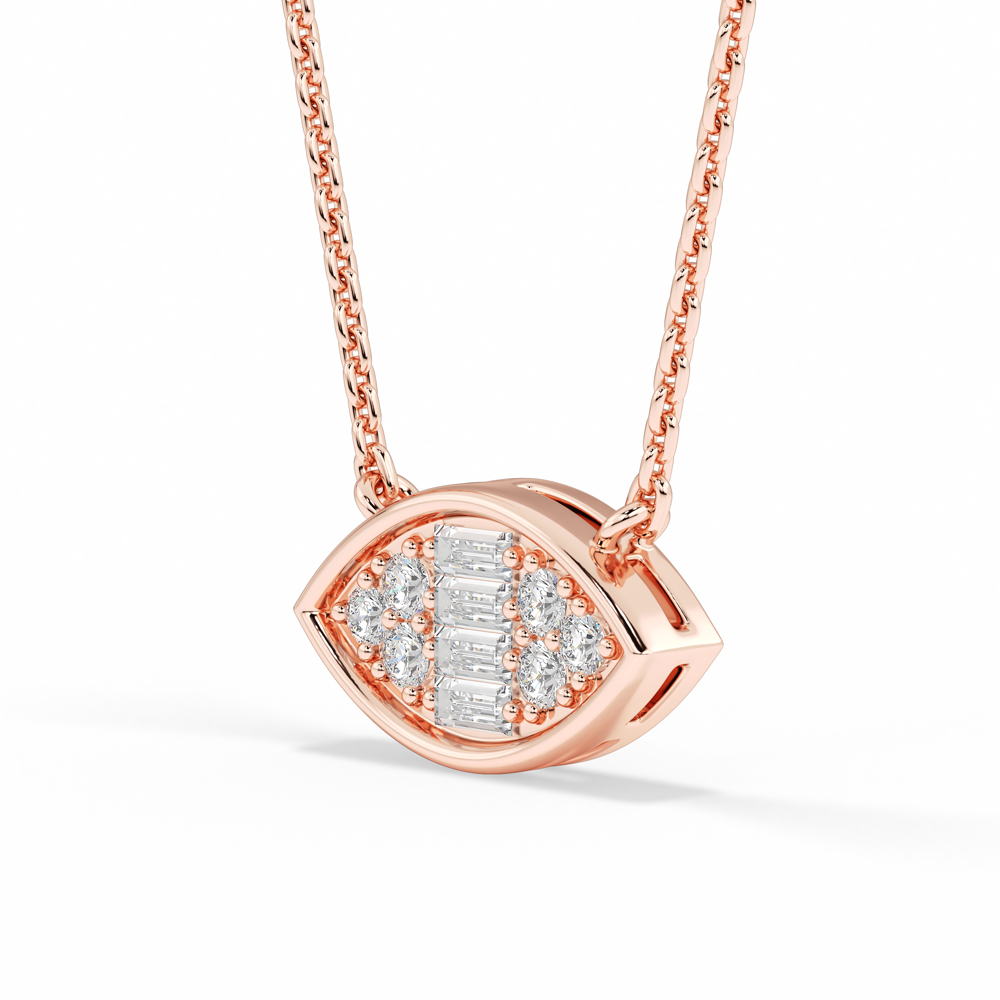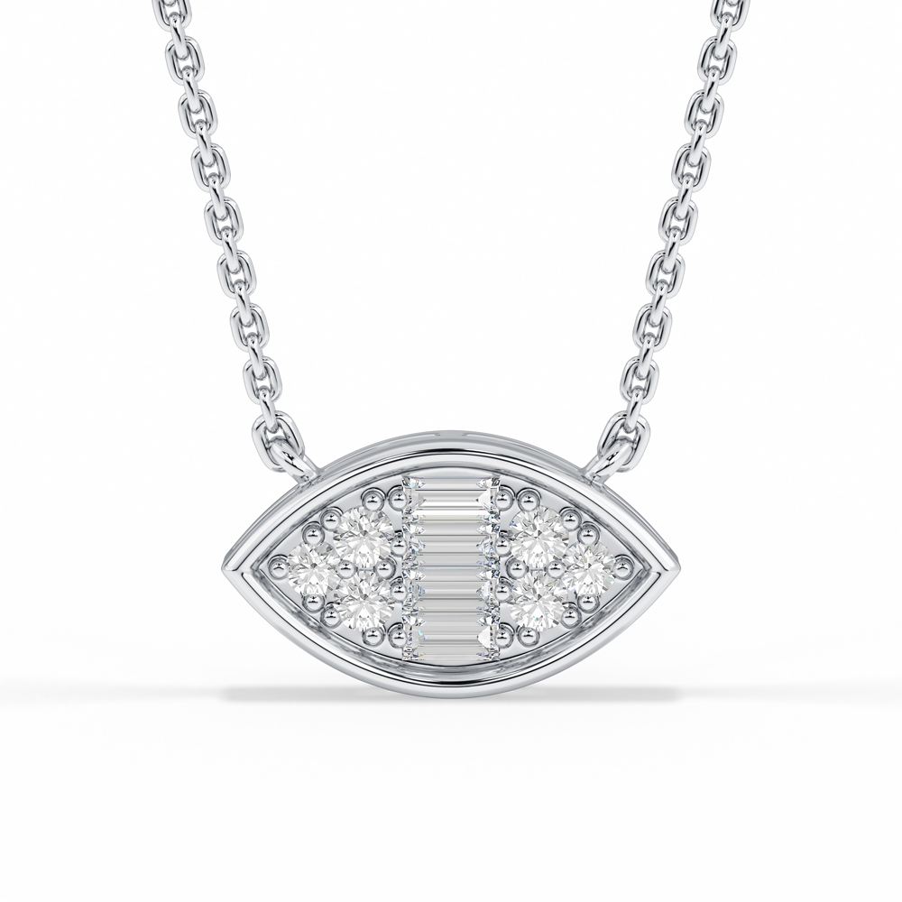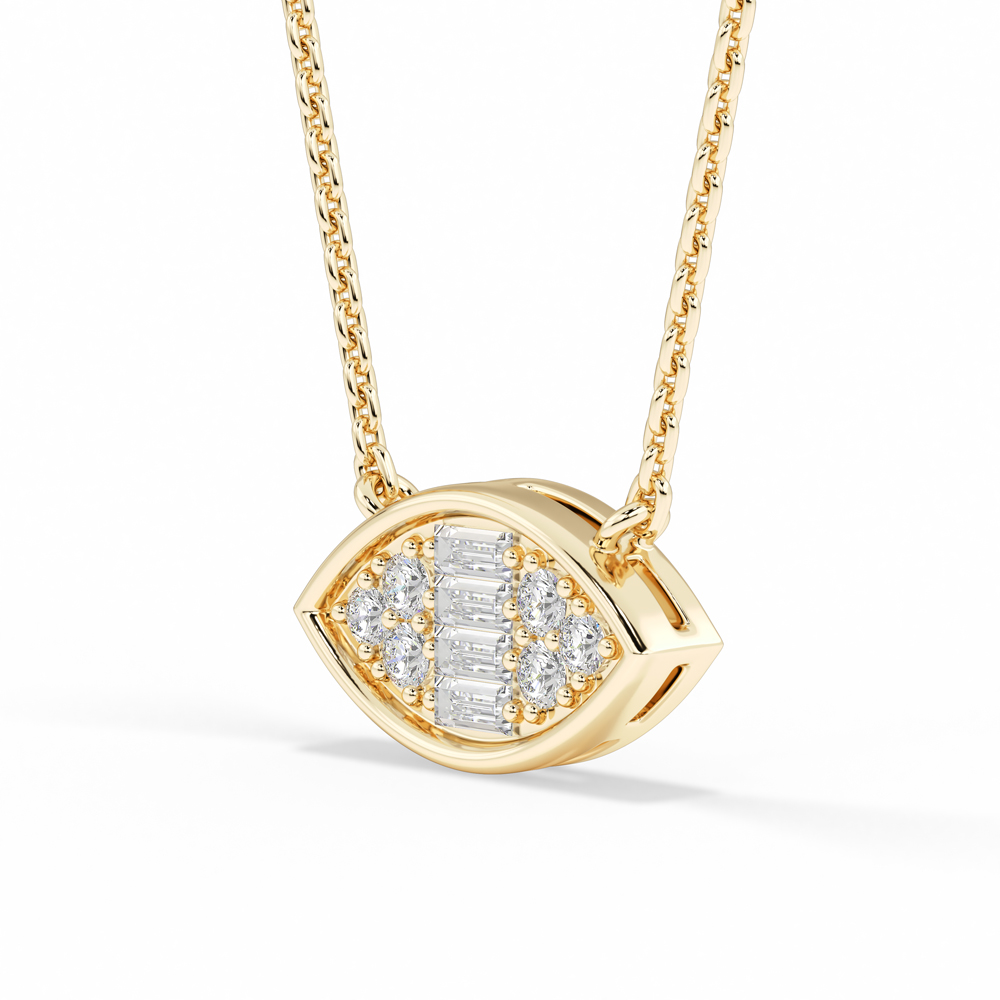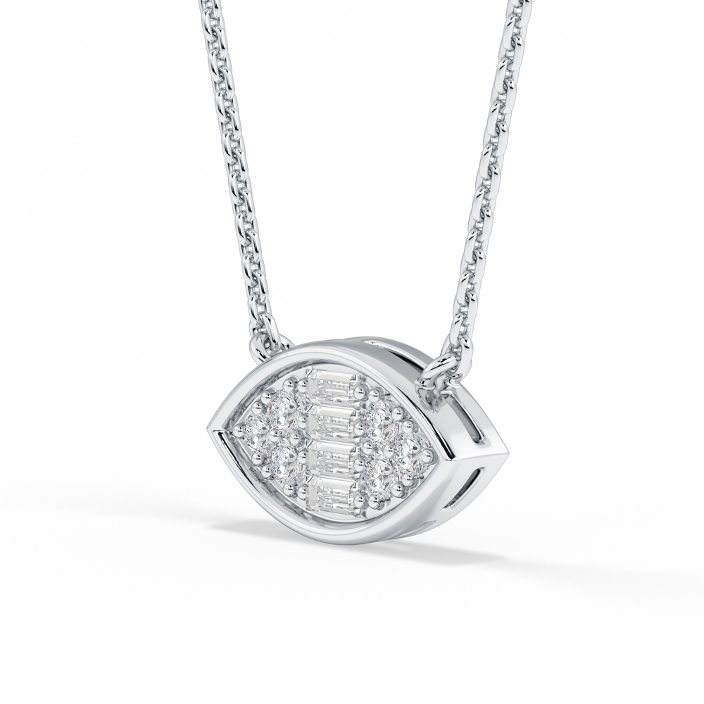 14K Marquise Cluster Necklace with Round and Baguette Diamonds