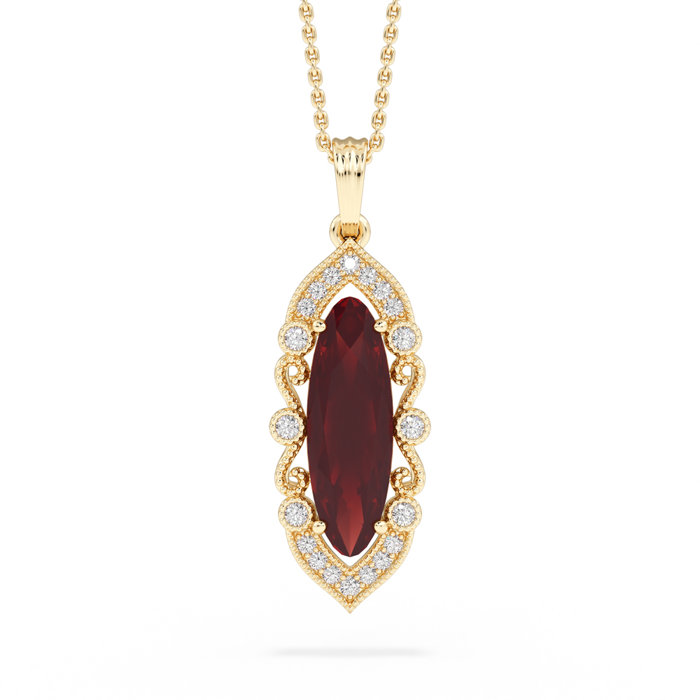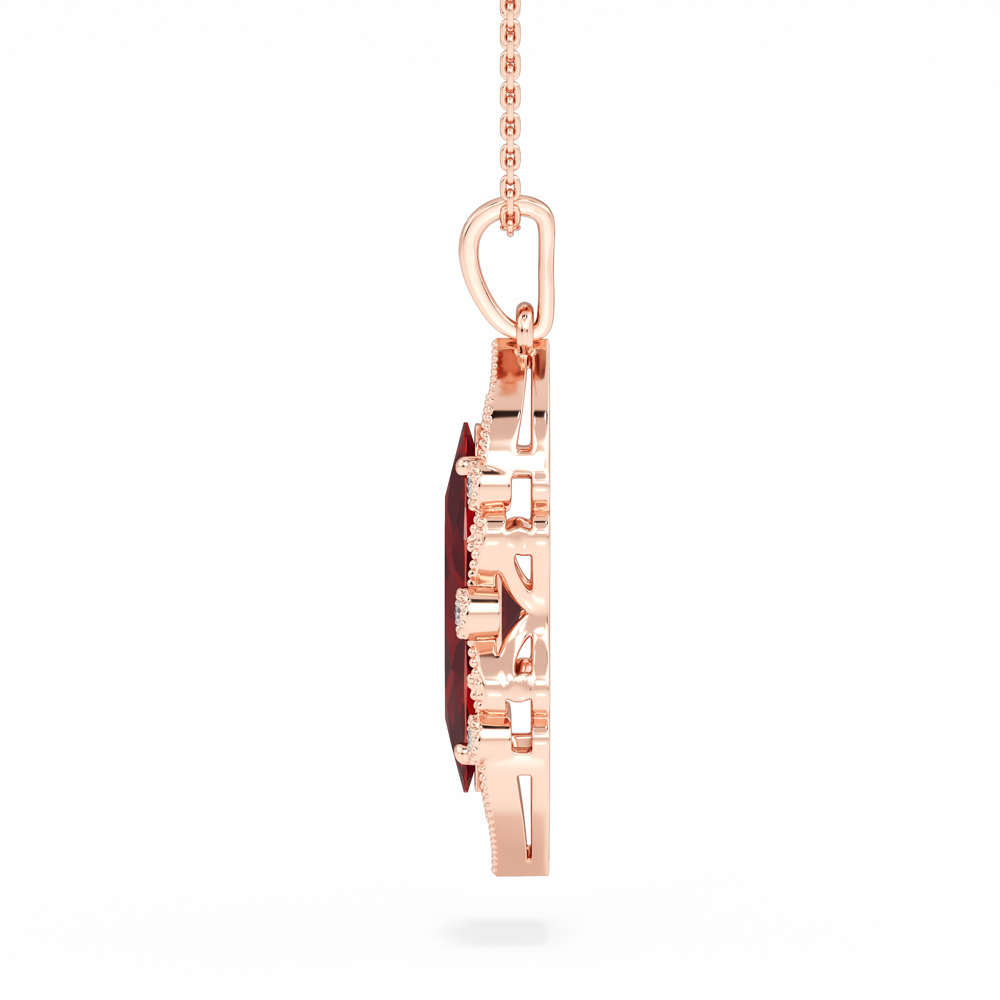 10K Gemstone Pendant w/ Pear Shaped Ruby and Diamond Halo